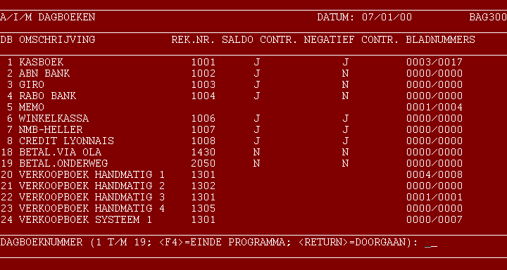 Een overzicht op papier van de aanwezige dagboeken verkrijgt u met programma 116.