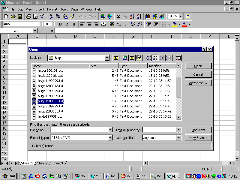 Debiteuren saldilijst : hisdbsJJJJPP.txt Crediteuren saldilijst : hiscdsJJJJPP.txt Kolommenbalans : hisklbJJJJPP.txt Proefsaldibalans : hispsbJJJJPP.txt Overzicht verlies en winst : hisovwJJJJPP.txt Gecomprimeerde balans : hisgb1JJJJPP.txt Gecomprimeerde balans (toelichting) : hisgb2JJJJPP.txt Gecomprimeerde overzicht verlies en winst : hisgv1JJJJPP.txt Gecomprimeerde overzicht verlies en winst (toelichting): hisgv2JJJJPP.txtHet gebruik van een dergelijk ascii-bestand in bijvoorbeeld Ms-Excel