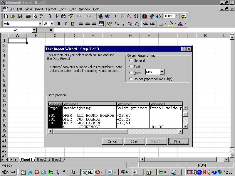 Hierboven wordt dit bestand in Ms-Excel via 'file' en 'open' geopend. De open-wizard begeleidt u verder bij het op de juiste manier openen van het importbestand.