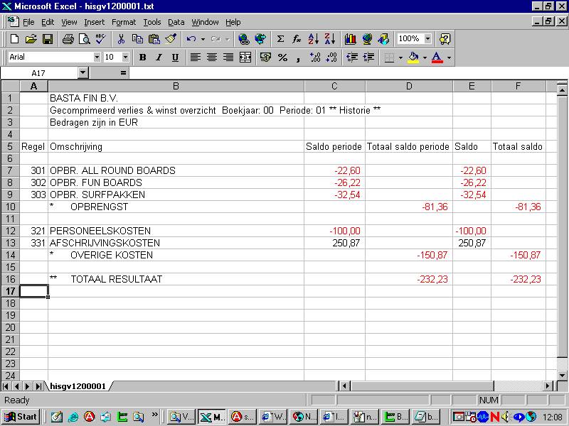 Na het vergroten van de cellen en het opmaken van kolommen met bedragen is het importbestand in Ms-Excel ingelezen en kunt u ermee 'echt' aan de slag.