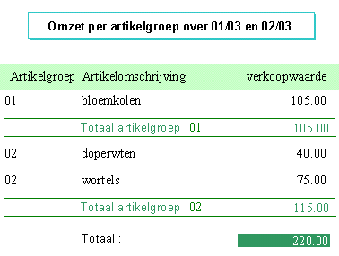 Men moet de teksten 'kop' en 'voet' niet al te letterlijk nemen. De inhoud van zo'n sectie kan desgewenst meerdere pagina's beslaan. Stel dat u een omzet overzicht voor een afnemer zou maken, dan kunt u in de rapportvoettekst desnoods een heel bestelformulier opnemen.