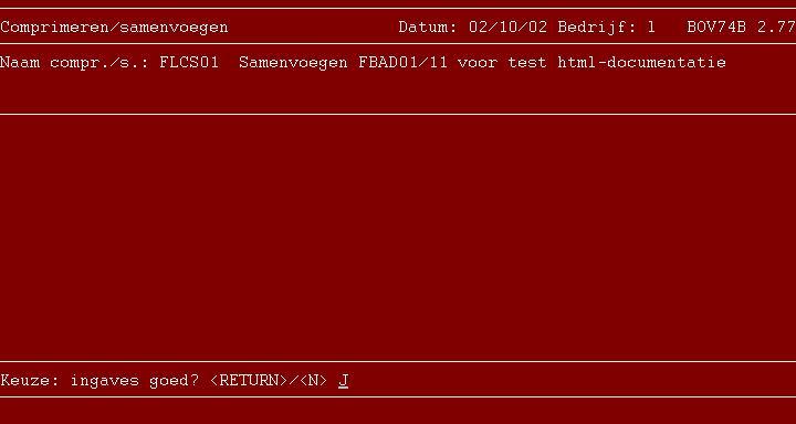 Als eerste wordt bij het verwerken het bestand 'FL.SXX' aangelegd. Op de plaats van de punt komt de bedrijfsletter te staan en de XX wordt vervangen door de door u ingegeven aanvulling op de naam 'FLCS'. In het bestand worden de records met het resultaat van het samenvoegen of het comprimeren weggeschreven.