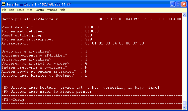 Met programma 455 kunt u een netto prijslijst per debiteur afdrukken.