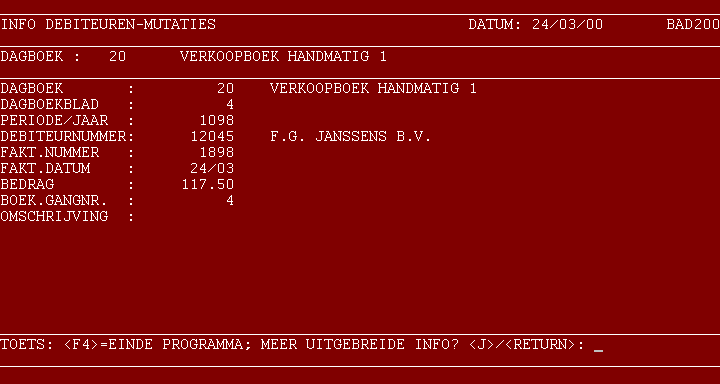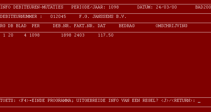 Informatie over actuele mutaties (sinds de laatste dagafsluiting) kunt u ook krijgen via programma 128 (Info financiële mutaties of via programma 137 (Info dagboekmutaties).