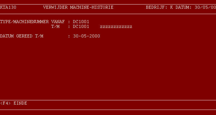 - Machinetype en -nummer vanaf en t/m; - Datum gereed t/m.