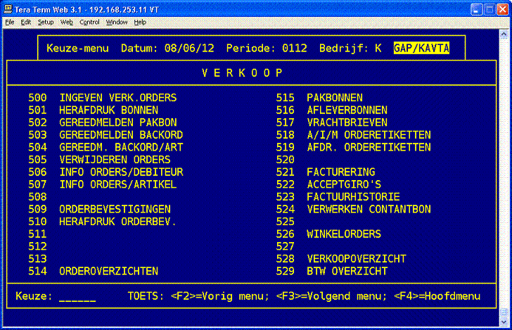 Kavta handleiding verkoopmodule Hoofdmenu : Functiebeschrijving en gehanteerde begrippen Schema met de mogelijke ordersoorten Inhoud naar functie Inhoud naar programma