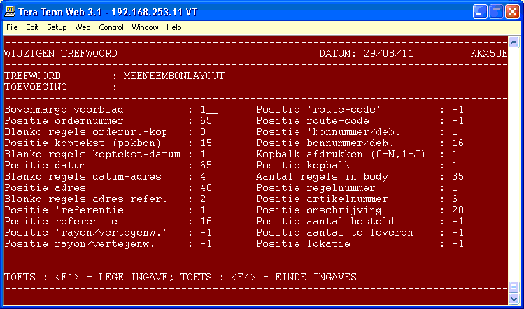 1=WelDe layout van de pakbonnen bepaalt u met de trefwoorden PAKBONKOPBALK, PAKBONLAYOUT en PAKBONTEKST.