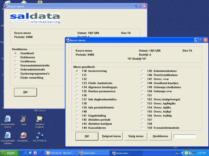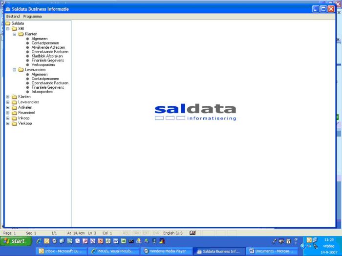 Voorbeeld 1 ontwikkeling "Saldata Business Informatie"-systeem: startscherm.