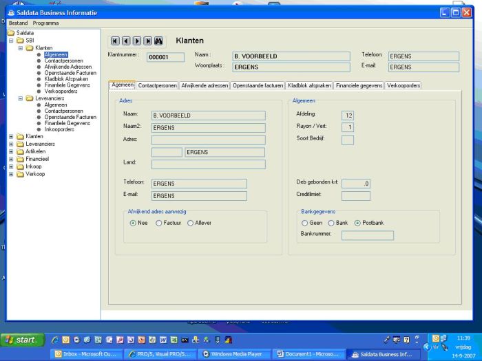 Voorbeeld 2 ontwikkeling "Saldata Business Informatie"-systeem: stamgegevens debiteuren.