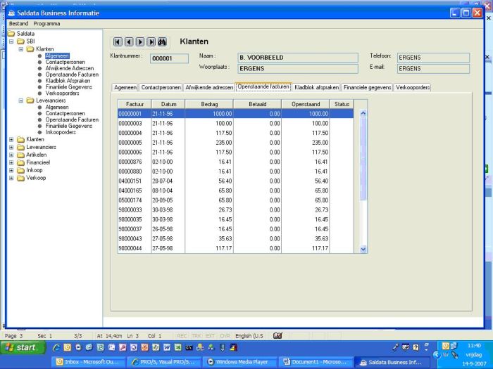 Voorbeeld 3 ontwikkeling "Saldata Business Informatie"-systeem: openstaande facturen.