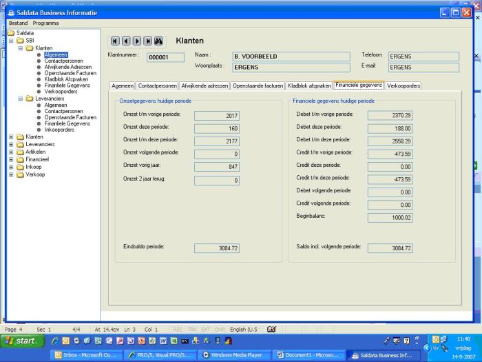 Voorbeeld 4 ontwikkeling "Saldata Business Informatie"-systeem: financiële gegevens.