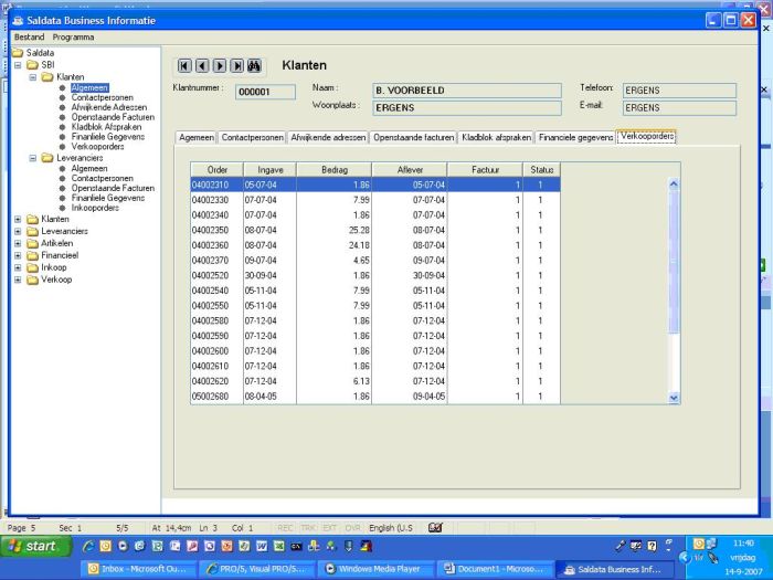 Voorbeeld 6 ontwikkeling "Saldata Business Informatie"-systeem: orders 2 (specificatie order).