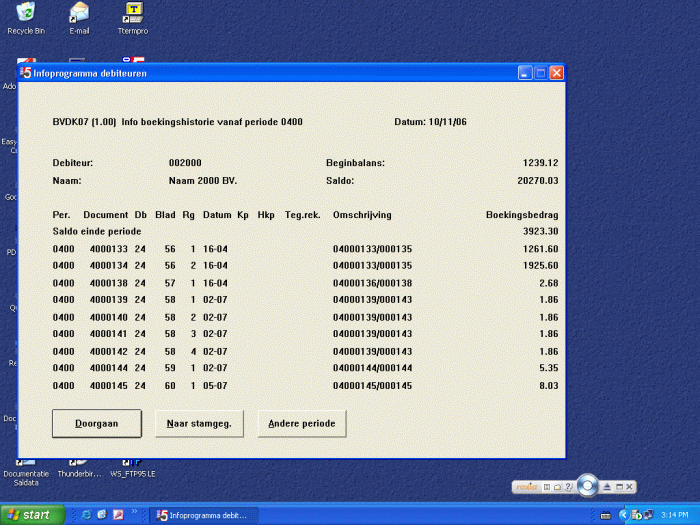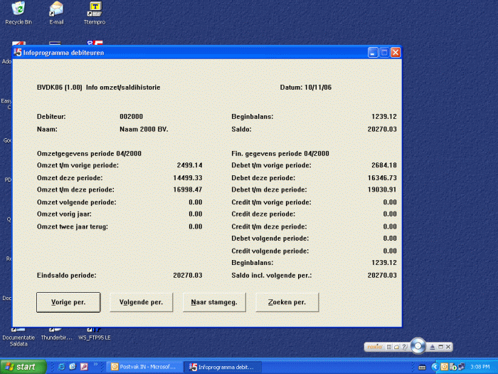 Voorbeeld van een infoscherm met debiteurengegevens in een grafische omgeving.